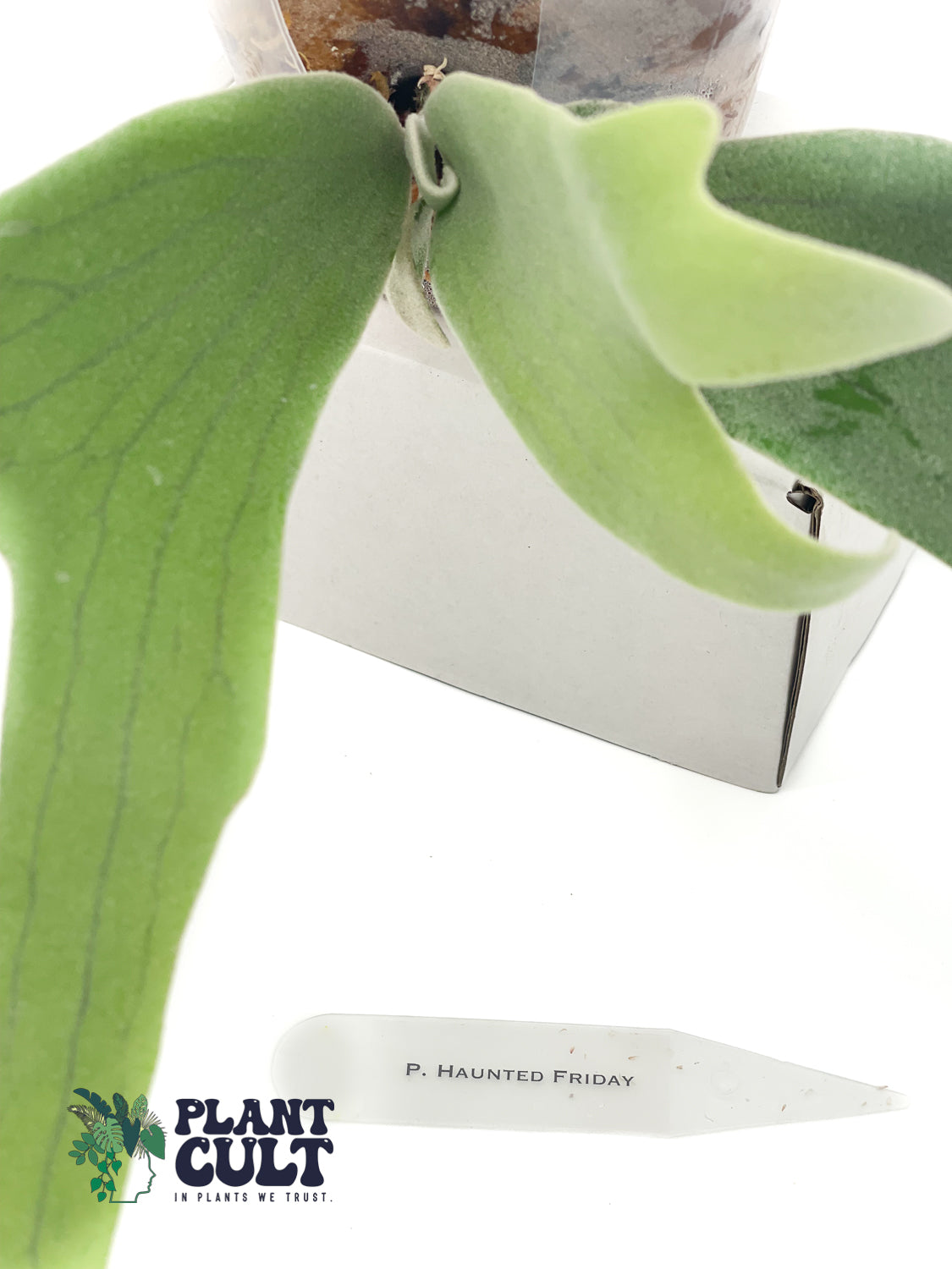 A spooky, rare beauty for intrepid collectors! The Haunted Friday pup is a quirky Platycerium staghorn fern selection with intriguing markings. Its young fronds emerge deep green with irregular pale patches, giving a ghostly marbled appearance. Already quite busy for its size, this pup is derived from healthy parent stock and comes to us acclimated and ready to grow.