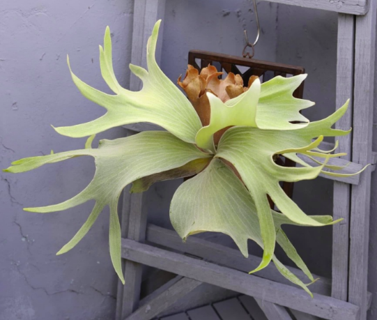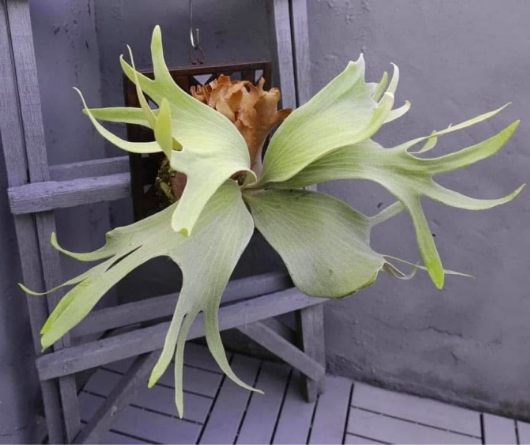 This pup will appreciate similar care to other Platyceriums: give it bright, indirect light, moderate watering, and occasional misting. As an epiphyte, it loves to climb, so mounting it on wood or cork will bring out its best form.